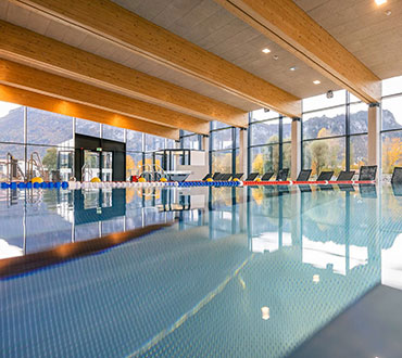 Größere Skigebiete (Winklmoos/Steinplatte, Saalbach-Hinterglemm, Lofer) sind in kurzen Wegen zu erreichen. Nach einem erlebnisreichen Urlaubstag finden Sie Entspannung im Hallenbad mit Schwimmbecken, Planschbecken, Heißwasser-Außenbecken und osmanischer Saunalandschaft.